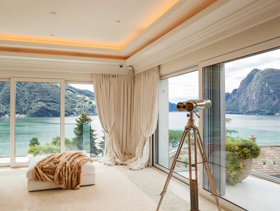 The award-winning home is one of Lugano’s best penthouses: No through traffic, fantastic lake views, surrounded by large historic properties with secular parks and famous ownership. One of these properties has been replaced with a stylish modern apartment building, and the three top apartments have been combined into a unique penthouse, inclusive of an outdoor pool. Expect simply the best.