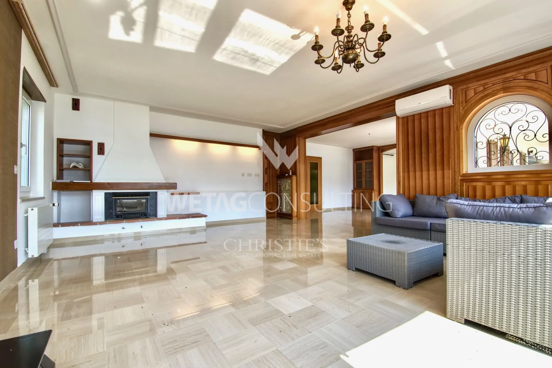 Questa elegante villa le dà il benvenuto con un grazioso vialetto, un giardino terrazzato e una piscina all'aperto. Entri e ammiri il bellissimo atrio e l’originale scala in marmo. Dal grande soggiorno con camino, la vista sul Lago di Lugano e sulle colline ticinesi è fantastica. Dalle ampie terrazze coperte e scoperte, potrà godere di piacevoli serate estive a cielo aperto.