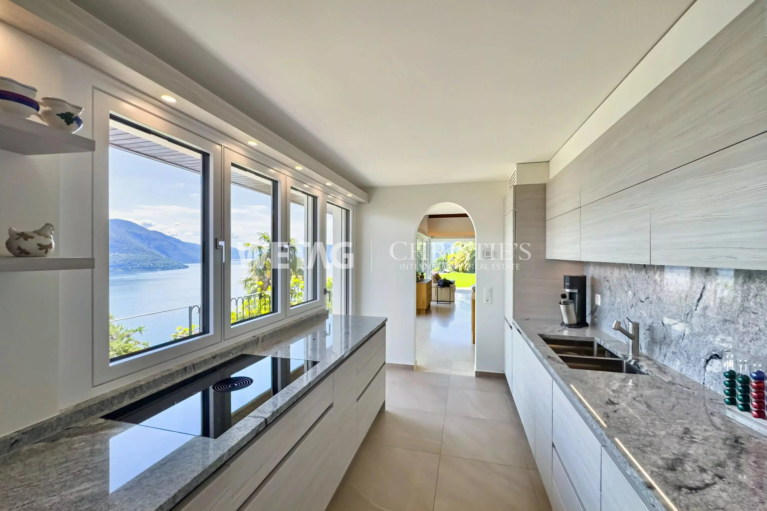 Ambienti abitativi luminosi, caratterizzati da un’elegante atmosfera e da ampie vetrate panoramiche mantengono costantemente il lago al centro della scena. L’elegante soggiorno, la cucina moderna con piano in granito e le luminose camere da letto con accesso alle terrazze uniscono un design contemporaneo a un autentico stile mediterraneo. In giardino è facilmente realizzabile una piscina, perfetta per godere ancora di più della vista sull’acqua scintillante.